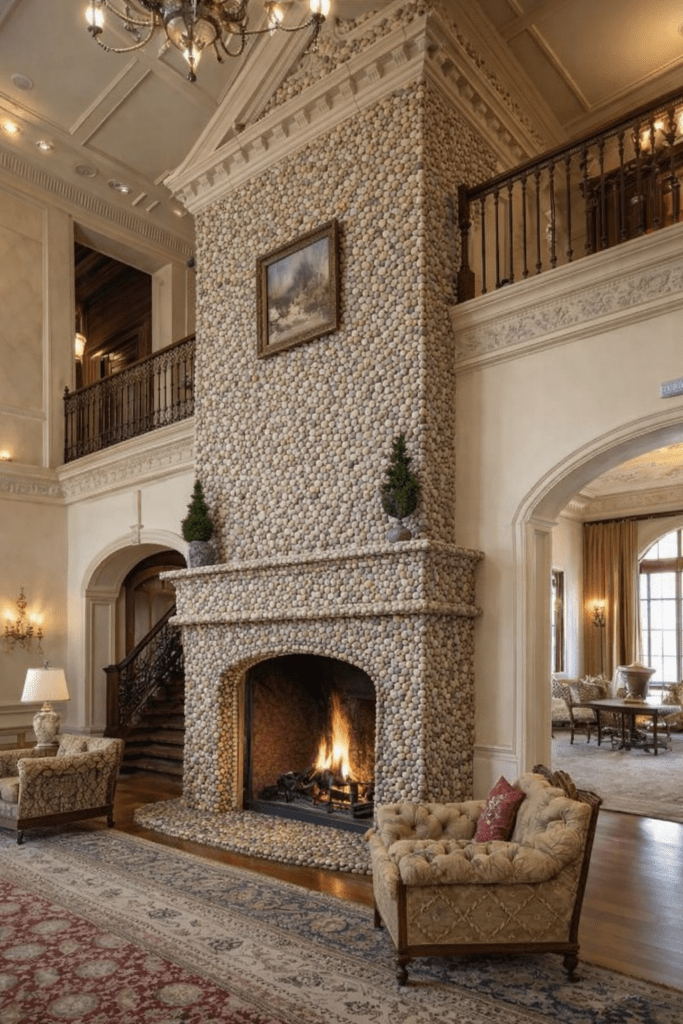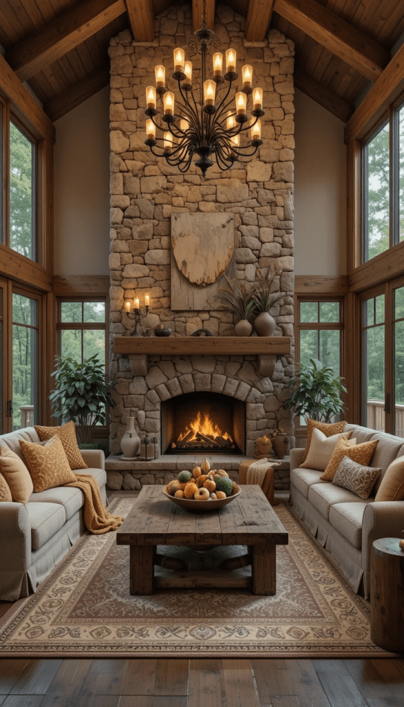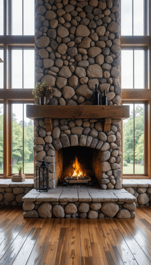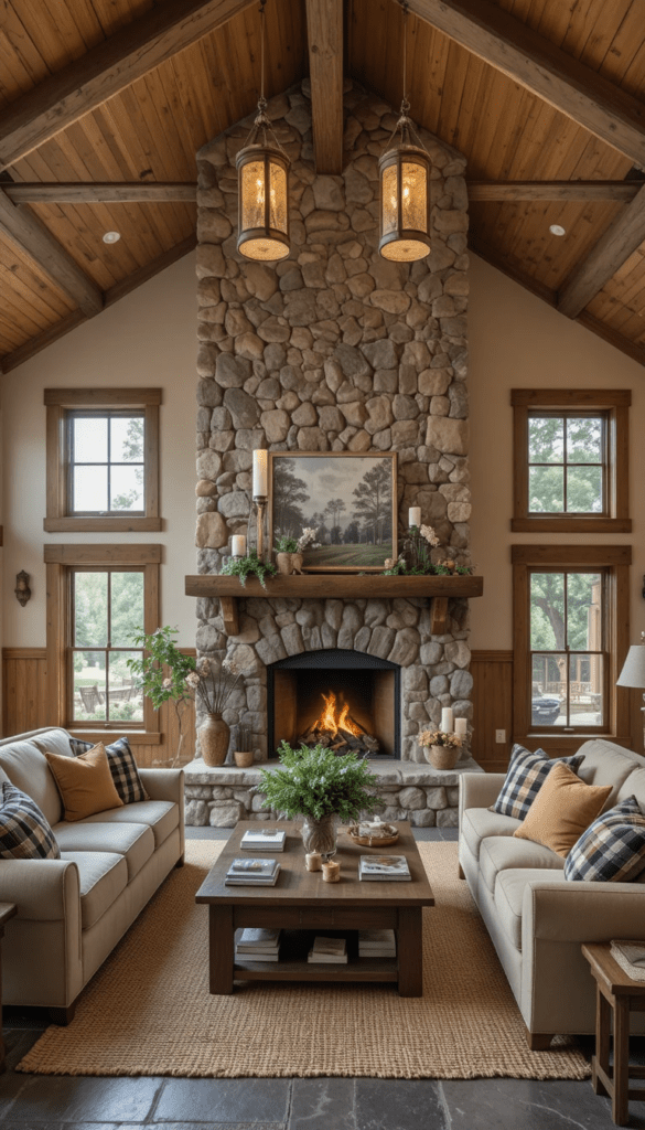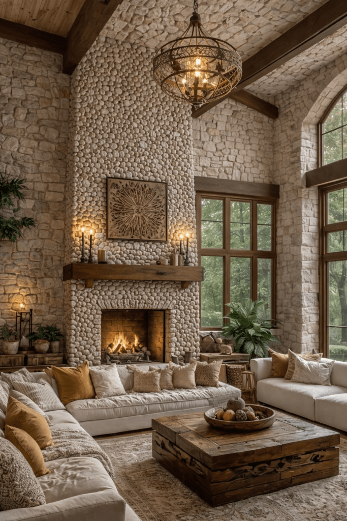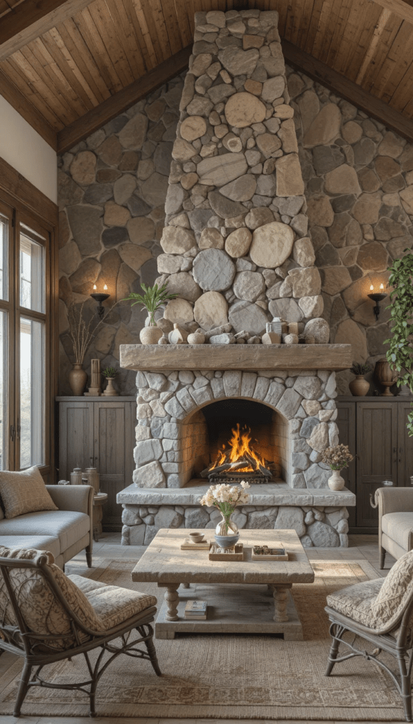 En la actualidad, muchas viviendas incorporan chimeneas de piedra como punto focal de la sala, creando espacios acogedores, sofisticados y visualmente impactantes.