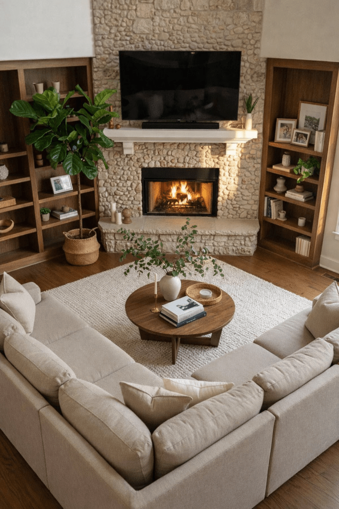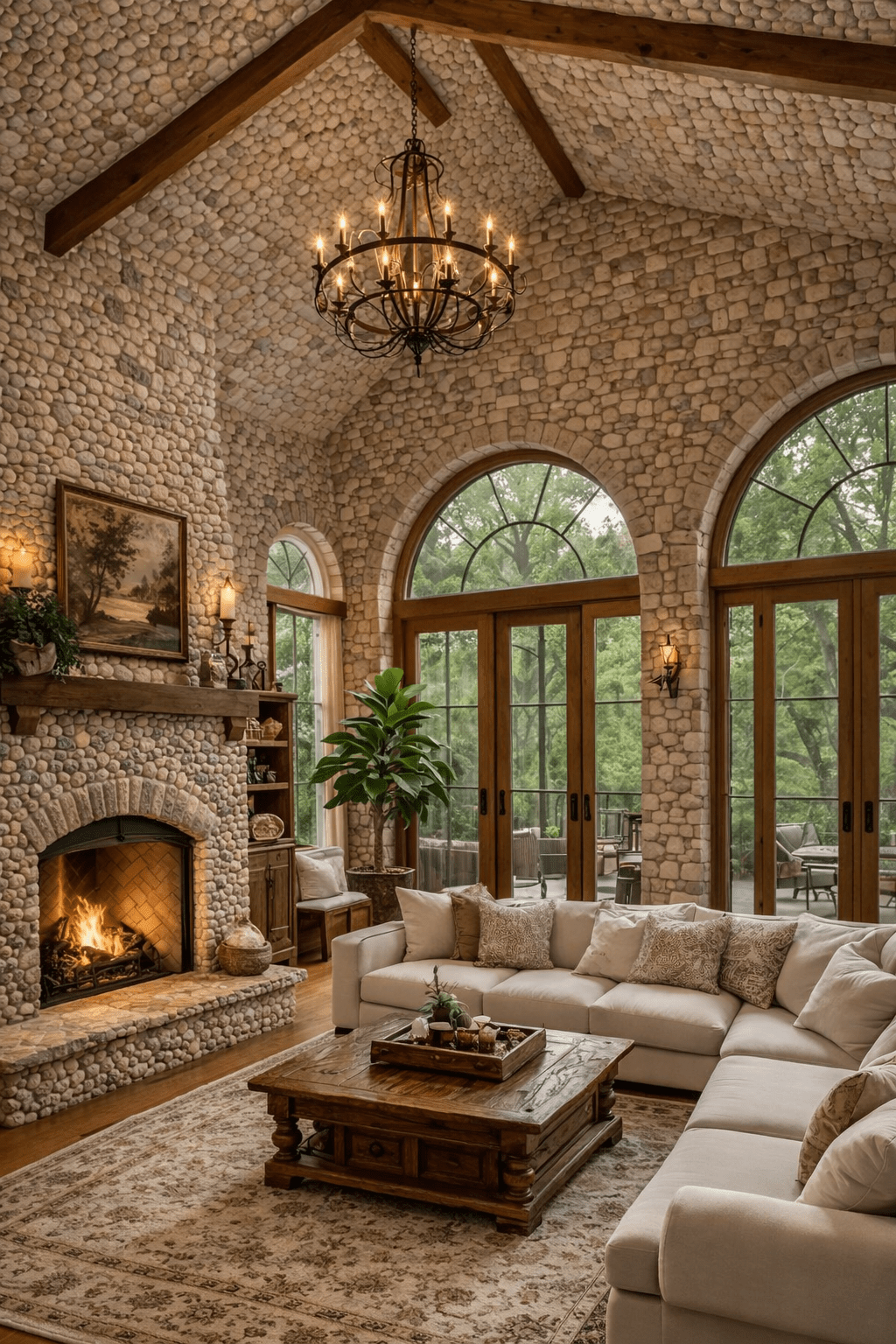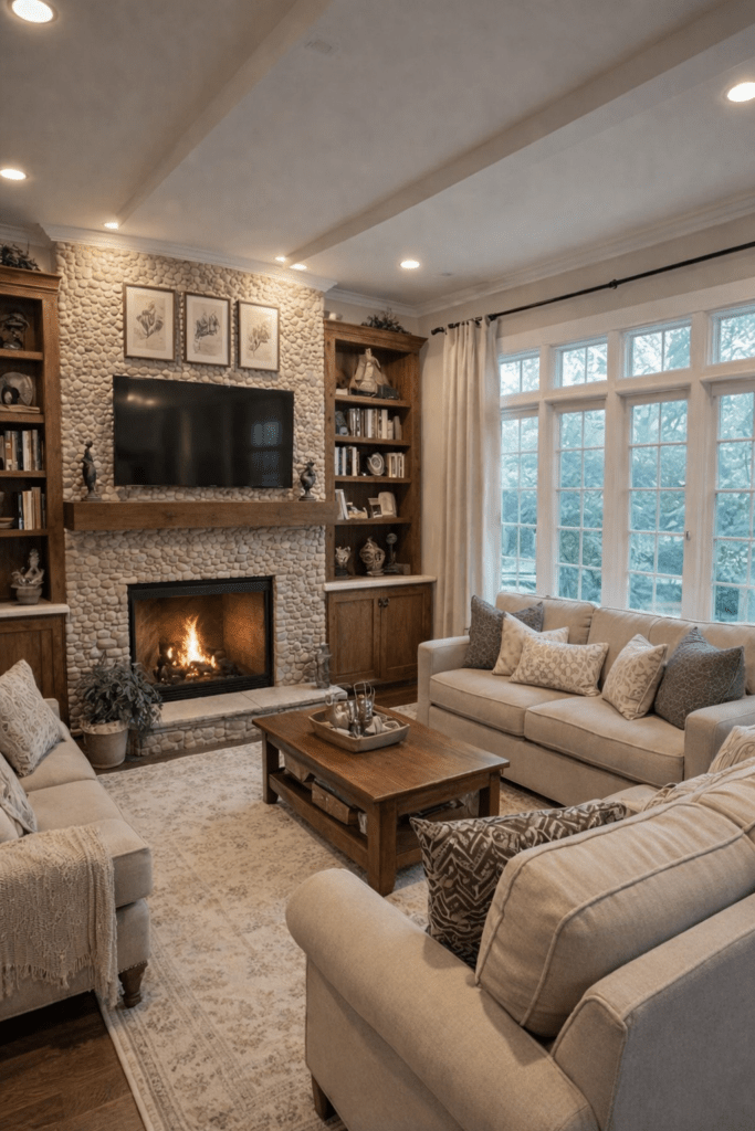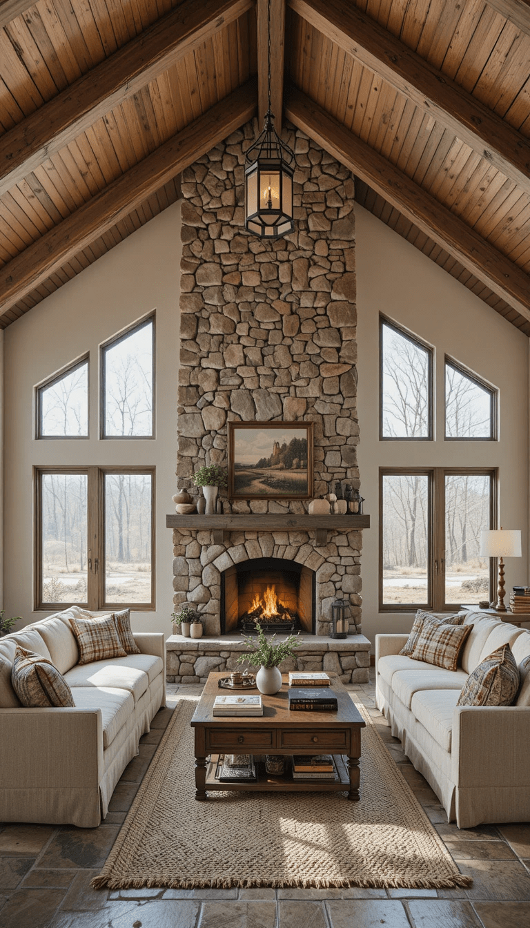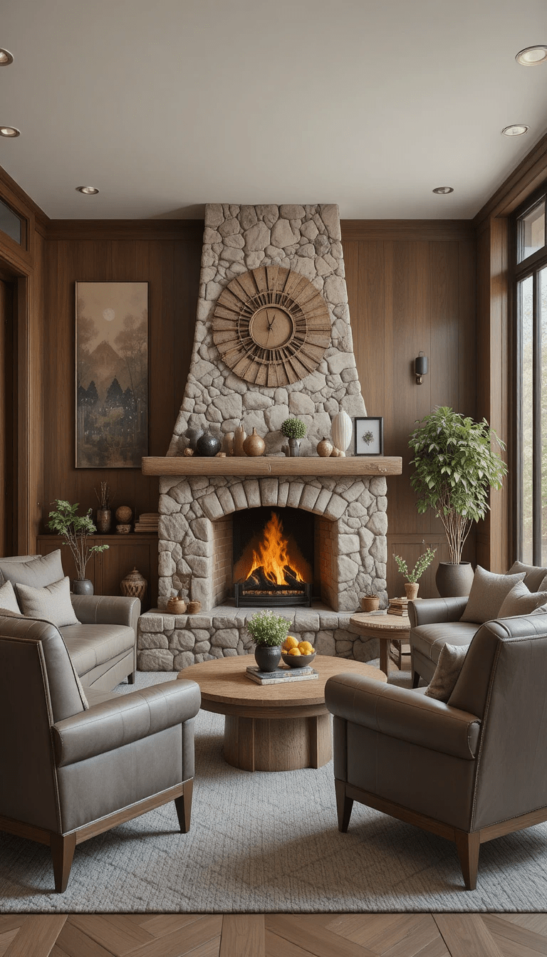 En la actualidad, muchas viviendas incorporan chimeneas de piedra como punto focal de la sala, creando espacios acogedores, sofisticados y visualmente impactantes.