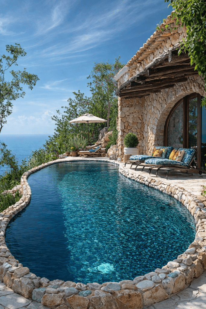 Una de las principales características de las piscinas modernas para casas con jardín es su diseño minimalista y geométrico, ideal para integrarse con espacios contemporáneos. Las líneas rectas, los bordes definidos y los acabados uniformes permiten que la piscina se vea ordenada y visualmente amplia.